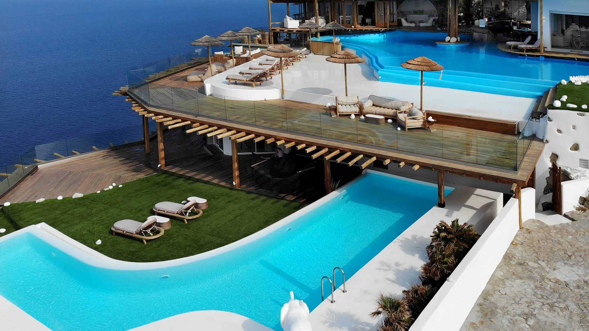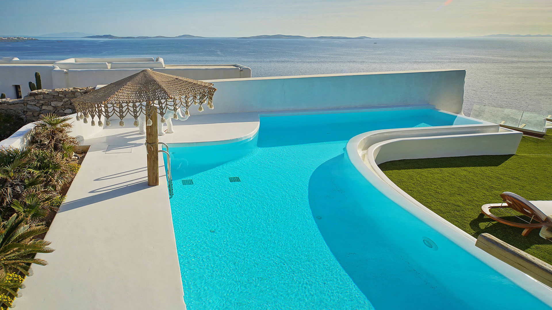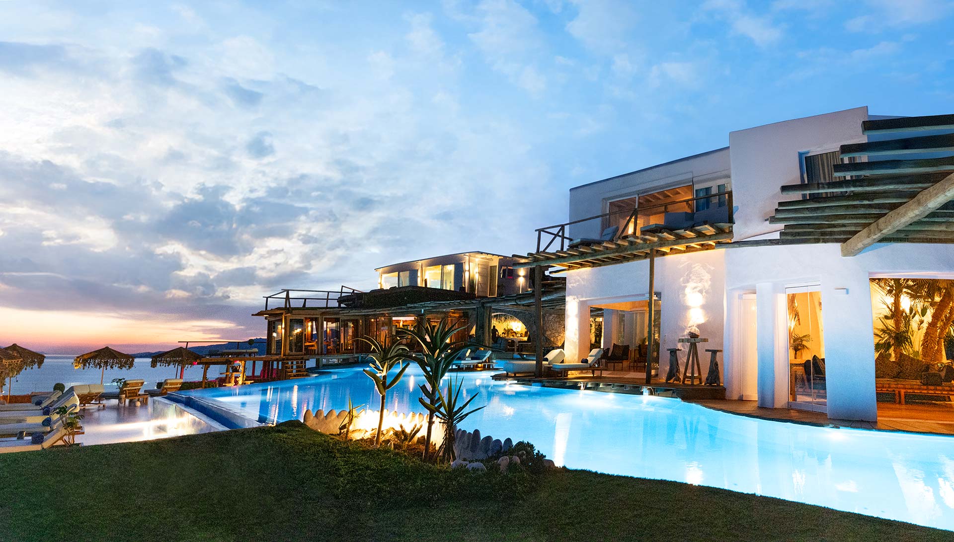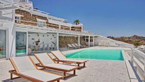 Nuestras villas de lujo en Mykonos, de calidad comprobada, son espléndidas y suntuosas, y ofrecen el escenario perfecto para la pura indulgencia, fiestas elegantes y sofisticadas, bodas memorables y una exclusiva vida de lujo en esta isla griega única. Embárcate en un viaje para descubrir un mundo fascinante de diversión, sol y paisajes pintorescos.