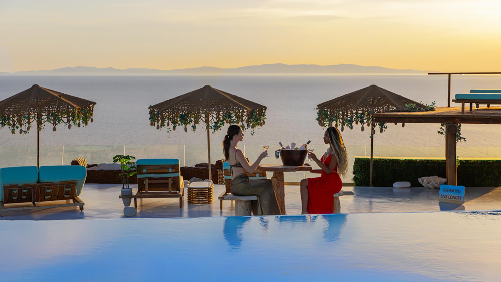 Tu ceremonia de boda no encontrará otro lugar como Zinas Villas y nuestras propiedades teniendo como telón de fondo la vista infinita al mar y la majestuosa puesta de sol con los colores y emociones más mágicos que jamás hayas experimentado.