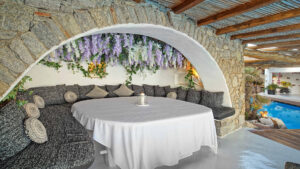 Nuestros organizadores de bodas pueden satisfacer todas tus necesidades y hacer que cualquiera de tus deseos se convierta en una realidad indescriptible. Diferentes tipos de escenarios pueden encontrar su lugar a petición tuya, frente a la isla de Delos y Rhenia, el dios Apolo te dará la bendición perfecta para ti y tu familia y tus amigos que se unirán a esta experiencia de toda una vida que sólo tendrá lugar en Zinas Villas.